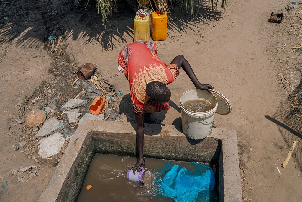 Gadiang is a village of more than 30,000 people. They’re mainly internally displaced women, children and the elderly. In this place, people have always suffered from water scarcity. From the time of creation, as they say, the community has depended on muddy, stagnant pond water and contaminated hand-dug wells, knowing what comes next: stomach cramps, diarrhea, sometimes death.